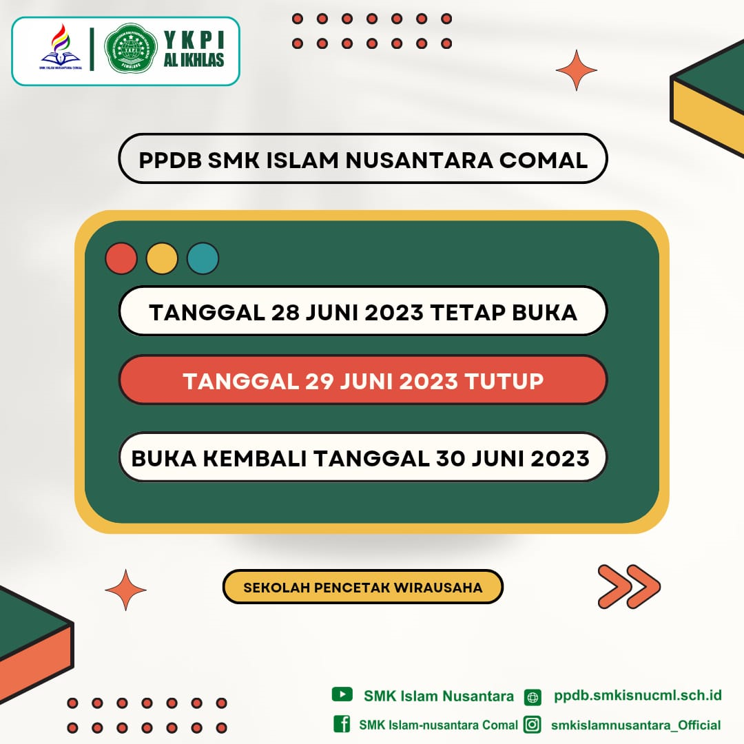 Rabu 28 juni 2023 PPDB SMK Islam Nusantara Comal Tetap buka