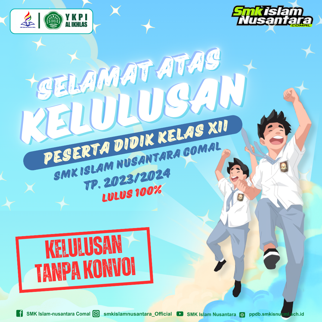 Pada Hari senin 6 Mei 2024 Seluruh peserta didik SMK Islam Nusantara Comal tingkat 12 dinyatakan lulus 100%