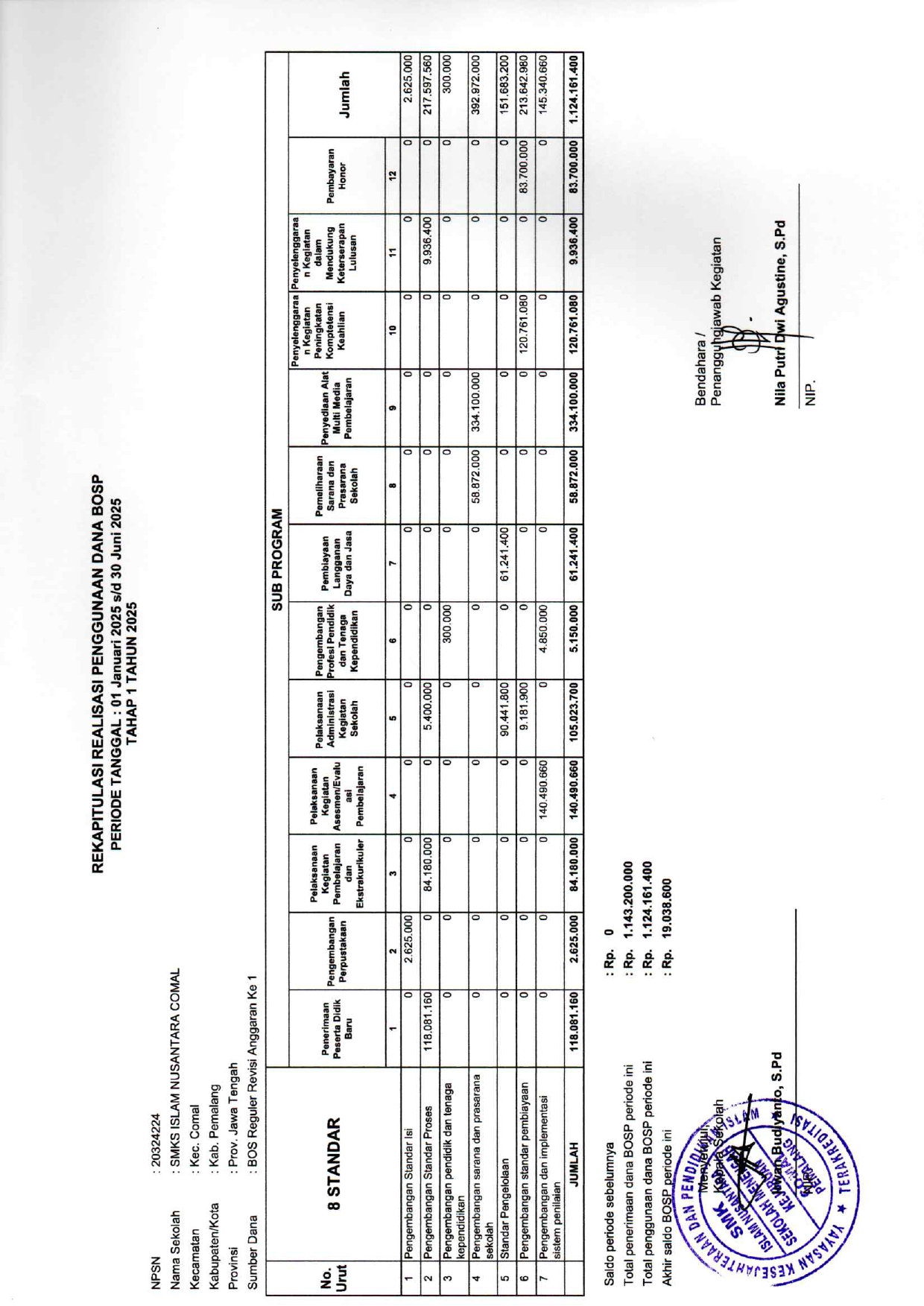 LAPORAN REKAPITULASI PENGGUNAAN DANA BOSP TAHAP 1 2025